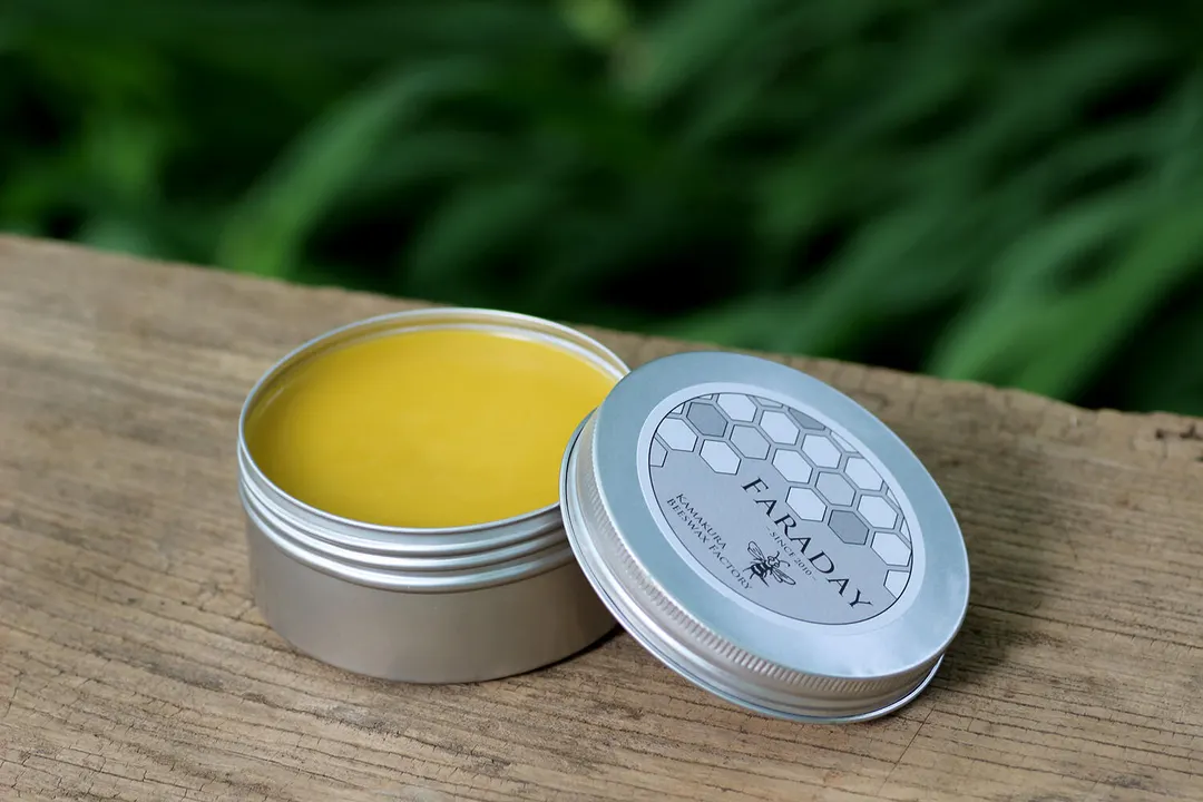 缶入り サイズ:直径8cm 高さ4cm 200g 原材料:蜜蝋、こめ油、ラベンダーオイル、ホホバオイル 最高級のオーガニックの蜜蝋を原材料としたFARADAYの蜜蝋ワックスは、無垢の木目が鮮やかに浮き出て、木製品の美しさを最大限に引き出すことが出来る天然素材塗料です。 塗った後も木の呼吸をさまたげませんので、自然の木の持つ艶やぬくもり、優しい肌触りをお楽しみいただけます。 木製品・無垢の床などのメンテナンスにお気軽にご利用下さい。 成分は天然素材のみで、合成物や鉱物油は一切使用しておりません。 その高い安全性から、小さなお子様やペットのいる環境でも安心してご利用いただけます。 使用方法は簡単ですので、是非ご家族一緒に楽しみながらワックス塗りを体験してみて下さい。 【ご注意】 このワックスは室内専用で土足厳禁です。 天然素材の蜜蝋ワックスは、ケミカルな化合物には浸透いたしませんので、化学塗装や化学ワックスを利用した木製品には、ご利用頂けません。