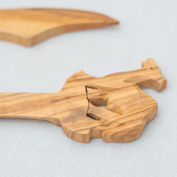 【この商品はサンプルです。使用に差し支えない程度のヒビ・カケのあるアウトレット品となりますので予めご了承ください】 中東パレスチナで剪定木材(オリーブ)から作られた、インテリアとして飾っても可愛い造形豊かなレターオープナー。 動物の表情が特徴的で誰とも被らないアイテムです。 使ってみると便利なアイテム、オフィスで沢山の書類を日々開封するお客様から助かっているとお声を頂いています。 ◆素材の「オリーブ」について 生産地パレスチナでは紀元前からオリーブが栽培されており、樹齢数千年の古木も生えています。5-7年で実を付け始め、30~50年経つと生育を助けるために収穫の後に剪定されます。生産団体では主に50年以上の木の剪定材を使用しています。枝や幹は木材業者へ、あるいは農家から直接工房に渡り、工芸品・日用品に生まれ変わります。小さな材も捨てることなく冬場の燃料に利用されています。 ◆「架け箸」について 架け箸は「素敵に国境はない」をモットーに、フェアトレードで商品開発・セレクト・販売を行うパレスチナ雑貨専門店です。実際にホームステイをして触れた現地の人や文化の魅力を手仕事を通して発信するとともに、木製品の手入れや、天然素材と人の手が掛け合わさった歪さを暮らしに取り入れる楽しみをお伝えしています。 世代、性別を問わず手に取っていただけるような日用雑貨、台所用品、文具などを常時約40種類ほど扱っており(在庫数や原価の関係で、goooods未掲載のお品もございます)、対面販売や、自社EC、卸でのお取り扱いのほか、これまでに阪急阪神百貨店や名鉄百貨店、松屋銀座での催事にも出店しています。 ◆本商品の生産団体「Holy Land Handicraft Cooperatives Society」について 中東で一番古い世界フェアトレード連盟(WFTO)加盟団体。パレスチナ(ベツレヘム・西岸地区)で2000人の地域のコミュニティを支えており、コロナ禍を乗り越え、現在も町の柱である観光収入が全く入らない中、海外との取引を続け離職者を出さないよう職人をサポートしています。