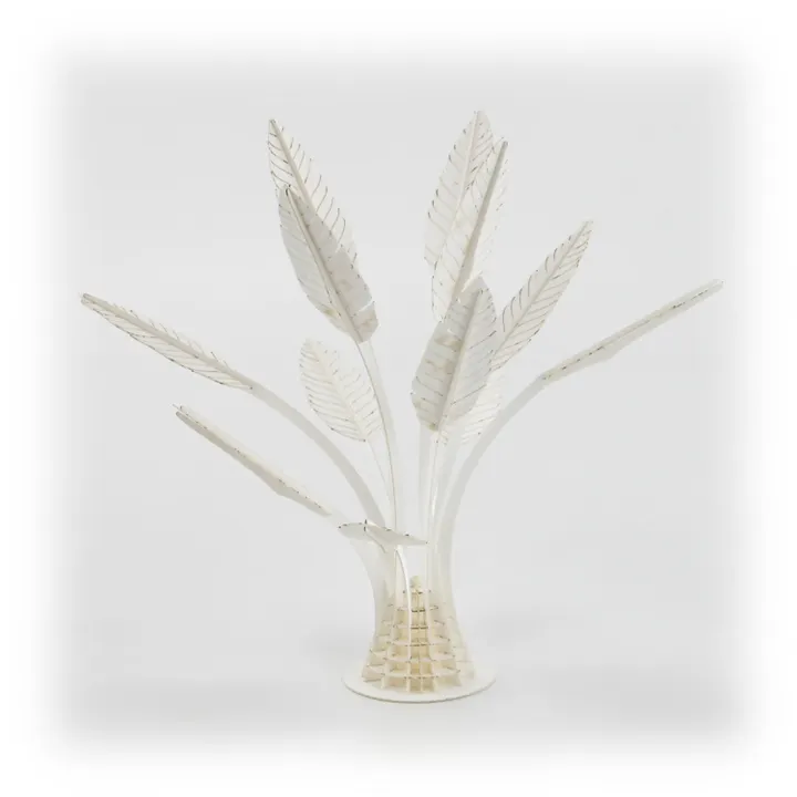 Augusta132は観葉植物であるオーガスタをモチーフにした厚紙製モデルです。 12枚の葉をつけた長さや反りの異なる茎をベース部分にバランスを見ながら自分の好みに差し込むことができます。 オーガスタはバナナのような大きな葉を持ち、置くだけで南国リゾート感を楽しめる植物で、花言葉は「輝かしい未来」「暖かい心」です。 素晴らしい未来を想像させるような花言葉を持つオーガスタは、開店祝いや開業祝い、新築祝いなどのプレゼントにも多く用いられます。 Augusta132ははさみやカッター、接着剤を使わずに組み立てる事ができます。(一部のパーツが極小サイズとなるのでピンセットがあると組み立て易いです) FLATSの精緻な造形をお楽しみいただき、Augusta132が皆様の心を癒す一助となれば幸いです。