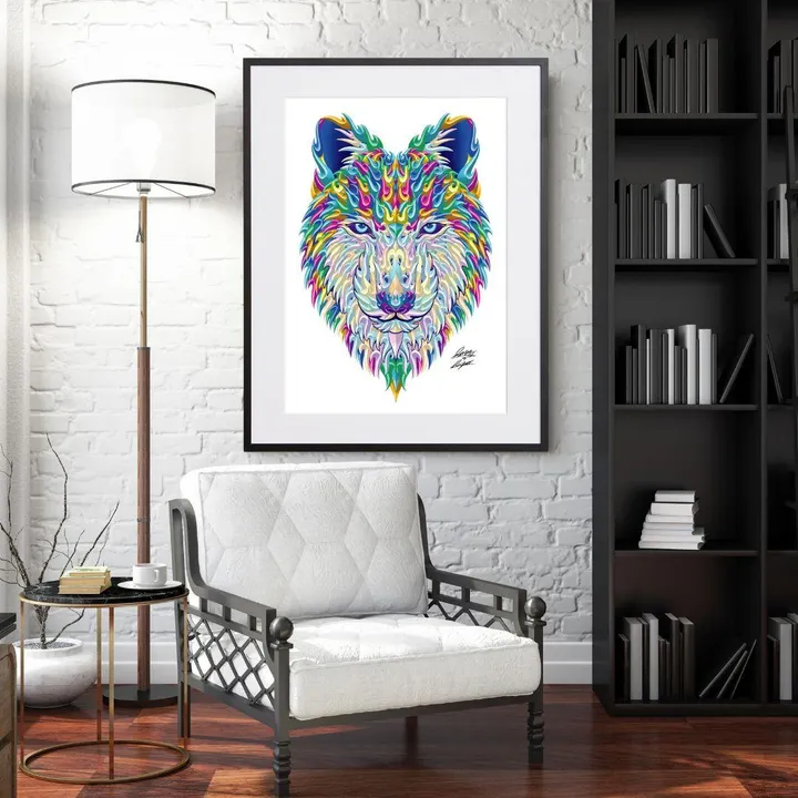 アーティスト -PROFILE- Madblast Hiro(ヒロ) 岐阜県出身。ライブペインター / アーティスト 2021年には大阪府の貝掛中学校の皆様と長さ230mの壁画を制作。 岐阜駅前の繊維問屋街では高さ16mの壁画を制作の他、G-SHOCKやSONY、BETONES等に作品提供を行う。 独自の模様をブロックのように積み上げる表現を突き詰める。 【作品について】 カラフルな色使いはMadblast Hiroの得意とする表現方法の一つ。 躍動的な雰囲気で、見る人を引き込む圧倒的な存在感を感じるアート。 作品名:Mad Wolf 手法:イラスト、デジタル ペーパー:高品質半光沢紙 マットカラー:白 マット*:DXホワイト芯 100%バージンパルプ/PH7・中性紙(2mm厚) ※全てのアートにマットがつきます フレームカラー:黒、白、無垢(3種類から選択) ※マット付のため通常とはフレームサイズが異なる規格となります。 【マット*とは?】 アートポスターの周りに挟んだ厚紙の事。 マットを使わない時に比べ余白により広がりが生まれ、作品の新たな一面を引き出せ作品の見栄えがグッと良くなります。また、額縁のガラス面と作品が直接触れたままにしておくと、くっついて作品を傷つけることがあります。マットを使用することでガラスと作品の間に空間ができ、作品を保護することができます。ブランドコンセプトにより全てのアートにマットがつきます。 ー ファッションのようにアートを ー 私達が掲げるコンセプトです! 毎日着替えるファッションの様に、アートも気軽に飾り変えて欲しい... 一旦飾り終えたアートにも光を当ててほしい... ポスター単体、またはリピートで中身だけのポスターを購入された方に"専用のハンガー"をセットでお届け。 「今までに無い!新しいアートの飾り方を提案」 飾る事がなくなった前のアートをハンガーにかけて洋服と一緒にかけてもらう。 その日の気分や、モチベーションですぐに取り換えられる様に。 もちろん、魅せる収納としても今までにないおすすめの飾り方です。