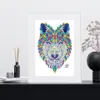 【現代アートポスター】動物 オオカミ 狼 模様 イラスト A4(S) フレームセット:白 29.4×38.4cm