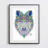 【現代アートポスター】動物 オオカミ 狼 模様 イラスト A3(M) フレームセット:黒 40.0×51.5cm