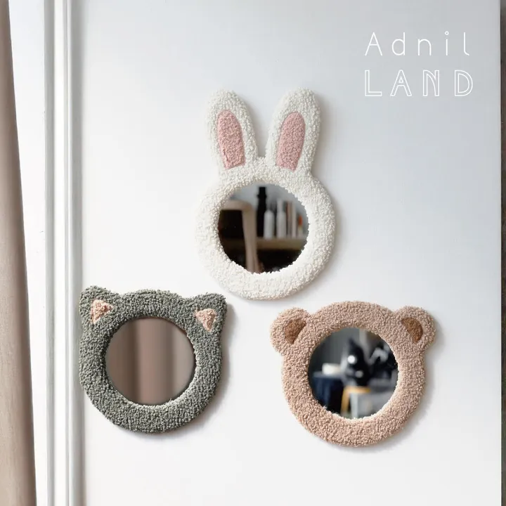 見て!』のぞき込むだけで大好きな動物になれるモコモコミラー まるで動物さんに変身したみたい! ふわふわの触り心地が気持ちいい、キュートなアニマルフェイスのミラー。 うさぎさん、くまさん、ねこさんの3種類があり、 鏡をのぞくと、まるで自分に可愛らしい耳が生えたみたい♪ ふわふわもこもこの毛糸で見た目も可愛く、思わず触りたくなる。 子供部屋や寝室に,幼稚園や施設にも。 フックつきのため、 子供が見やすい位置にでも簡単に設置可能!