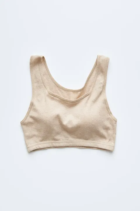 【オーガニックコットン ハーフトップブラ】 多くの方にご愛用いただいている、ライフアファのロングセラーアイテムです。 肌に優しいオーガニックコットンで作られており、柔らかな肌触りが魅力です。幅広の肩紐が胸をしっかりと包み込み、肩への負担を和らげるため、ストラップが苦手な方にもおすすめです。また、ブラのパッドは取り外しが可能で、お好みに合わせて調整やお洗濯ができます。2サイズ展開で、ご自身に合ったサイズをお選びいただけます。オーガニックコットンのフライス生地を使用し、日本の工場で丁寧に製造されているため、安心してお使いいただけます。フライス生地ならではの伸縮性と柔らかな肌触りで、快適な着心地になっています。植物や鉱物といった自然由来の成分で染める「ボタニカルダイ」などを使った優しい色合いの4色のカラーバリエーションになっています。 ●ブラウン(オーガニックカラードコットン) 綿そのものに色が付いた綿をオーガニックカラードコットンといいます。茶色のものは茶綿、緑のものはグリーンコットン。綿そのものについているため、デリケートな色味であることや、色落ちやがほとんどないこと、白いものとの洗濯が出来るのが特徴です。 ●サクラピンク(Sakura pink) 桜の花のエキス、レスベラトールにはアンチエイジング効果があり、ポリフェノールには美白や肌のハリや潤いを維持させる効果があると言われています。サクラの枝、幹、花びらから色素を抽出し、独自の染色方法でオーガニックコットンを染めました。従来の草木染めより褪色が少なく自然な色合いです。 ●タケスミグレー(Bamboo charcoal gray) 成長が早く節目を祝う竹を炭化させた竹炭は、多孔質で表面積が大きく、優れた吸着力を持つため、水を浄化したり消臭剤として利用されたりします。また、抗菌力で菌から体を守り、消臭効果で快適さを保ちます。竹炭の遠赤外線効果は自律神経を整え、新陳代謝を高めるとされています。独自の染色方法でグレーに染めたオーガニックコットンは、従来の草木染より褪色が少なく自然な色合いを楽しんで頂けます。 ●シトラスイエロー(Citrus yellow) インドのヒマラヤ地方が原産地のレモン。樹木名の由来はヒンドゥー語のLimbu(ヒマラヤに住まう一部族)が語源といわれています。樹木全体の花言葉は「誠実な愛」、果実の花言葉は「熱情」「陽気な考え」です。この「熱情」とは、レモンの印象的な酸味が、熱い思いを伝えるときとイメージが重なることからつけられた言葉です。レモンの果皮に含まれるリモネンにはリラックス効果があります。またクエン酸は疲労回復、血行促進、免疫を高める効果があり若さを保つ効果があると言われています。レモンの果実から色素を抽出し、独自の染色方法で黄色に染めたオーガニックコットンは、従来の草木染より褪色が少なく自然な色合いを楽しんで頂けます。 ■ボタニカルダイについて カラーバリエーションには、植物や鉱物といった自然由来の成分を染料として用いるボタニカルダイを採用しています。これは、古くから世界各地で受け継がれてきた草木染めの知恵と技術を、現代の技術と融合させた染色方法で、自然界に存在する色素とわずかな化学染料を併用して染めるハイブリッドな植物染めです。従来の草木染めと比べて、高い堅牢度と鮮やかな発色が特徴。金属による発色と定着を促す媒染剤は使わず、色素を抽出する時の温度や酸性またはアルカリ性、染料の濃度によって色味をコントロールします。植物が持つ自然の色は、複雑に乱反射するため、繊維を美しく奥行きある色に染めることができます。環境への負荷を低減するだけでなく、自然の恵みを身にまとう喜びを感じていただける、サステナブルな染色方法です。 ~ライフアファの思い~ ライフアファは、自然環境との調和を大切にしたものづくりを通して、 衣服が私たちの心と身体の健康にとって重要な役割を担うと信じています。 日々の暮らしの中で深呼吸をするように。自然の恵みを生かした衣服は、 身にまとうたびに大地のエネルギーを感じさせてくれます。 自分を大切にすることは、地球を大切にすること。ライフアファの衣服を身にまとうことで、 自然の安らぎを感じ、より良い未来へ思いを馳せることが出来たらと、 私たちは心から願っています。