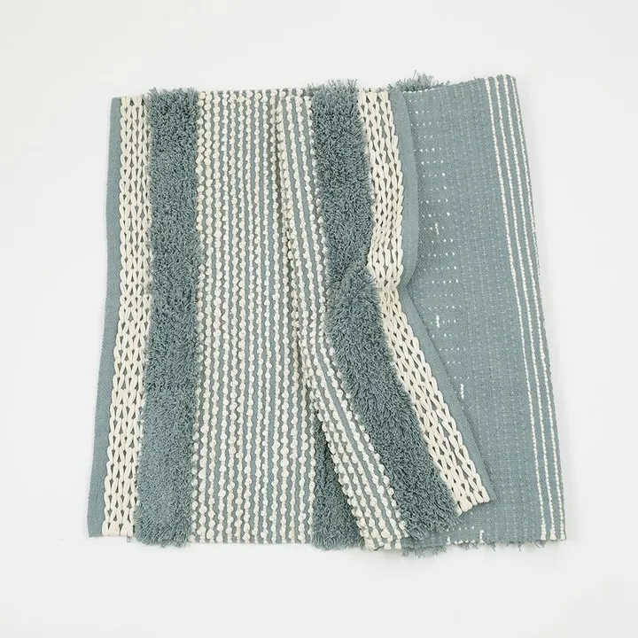 異なる編地がミックスされた個性的なフロアマットです。 存在感がありながら、落ち着いたスモーキーカラーで、色違いやサイズ違いで揃えても。 敷くとお部屋の雰囲気をがらっと変えてくれます。 ※Sサイズ完売 【ファブリック】【D】