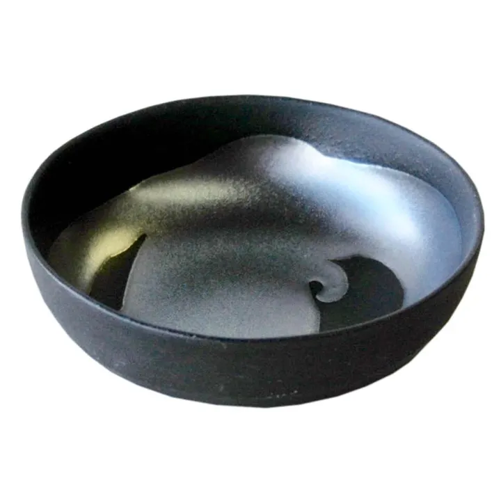 きめ細やかな黒土に金銀の釉薬が映える。 手仕事ならではの薄造りで、持ちやすさは抜群です。 職人の手によって一つ一つ柄杓でかける金銀の釉薬がそれぞれの商品に違った表情を醸し出します。
