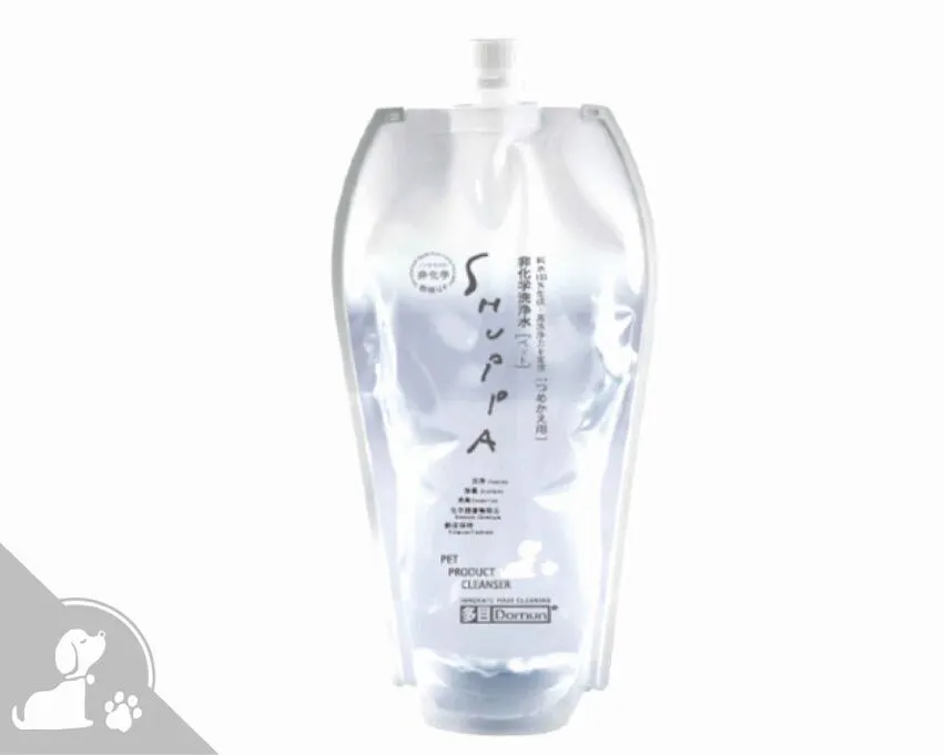シュッパペット用500mlの詰替え用12個入り箱です。 ワンちゃんやネコちゃんの気になる汚れ、臭いを除去し、毛や足裏に付いた汚れなどを落とし、除菌・消臭効果で快適な環境を保ちます。 界面活性剤、色素、香料、防腐剤、アルコールなどは一切不使用で自社製の純水99.85%と炭酸カリウム(食品添加物)0.15%から生成されたシュッパは人にもペットにも環境にも優しい洗浄水です。 使用方法:専用もしくはスプレー式ボトルにて本製品を詰め替えてからペットなどから10~20cmほど本製品を離して、少し湿り気をおびる程度までスプレーをしてください。 そのままでも問題なりませんが、気になる場合には乾いた布なので水分を拭き取ってください。 ペットなどが舐めてしまっても全く問題はありません。