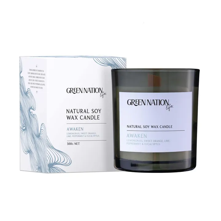 【ウッドウィックソイキャンドル 300g】 ■最高級のソイワックスのウィックソイキャンドル。 ワックスには最高級のソイワックスを使用しております。 ソイワックスは、融点が低いため燃焼時間が長くススが出にくいナチュラルなワックスです。 芯には、ウッドウィックを使用しており、優しく燃え上がり、焚き火の燃える木を彷彿させる「音」と火のゆらぎは心を落ち着かせ深い休息を感じさせます。 深い森林を思い起させるダークグリーンのパッケージに、焚き火の音と天然由来の贅沢な香りが癒しを与えてくれるキャンドル。 ■五感を呼び起こす豊かな自然の香り 厳選したエッセンシャルオイルでオリジナルブレンドされた贅沢な自然の香り。 とにかく「心地よい」と感じる香りを目指して、何層にも重なるエッセンシャルオイルの奥深く美しいブレンドを完成させました。 ■満足感のあるサイズ 300gの重量感のあるキャンドルサイズ。 燃焼時間は、約60時間と長時間香りをお楽しみいただけます。 ■ほこりも防止にも ほこりを寄せ付けず、香りを長続きさせれてくれるカバー付き。 ワックスも清潔に保つことができます。 ■リサイクルガラス使用 パッケージはリサイクルガラス使用し100%リサイクル可能。 ゴミを減らし環境に優しい商品を追求しています。 【香り(4種類)】 ■エスケープ レモンマートル / サンダルウッド / ユーカリ / パイン(松) / アカシア ユーカリとフレッシュパインに新鮮なオーストラリアの花々の香りが加わり、まるでお花に囲まれたような美しいオーストラリアの風景へといざなう香りです。 ■アウェイクン レモングラス / スイートオレンジ / ライム / ペパーミント / ユーカリ エキゾチックなレモングラスとライム、フレッシュでクールなペパーミントとユーカリの完璧なバランスがあなたの感覚をスッキリと目覚めさせてくれるような香り。 ■ブリス ブラックベリー / カシス / ローズマリーリーフ / パチョリ / スイートオレンジ なじみあるフルーティーなノートにスモーキーなパチョリとローズマリーが幾重にも重なり、 鮮やかでありつつウッディなブレンドが心地よい香りを演出します。 ■ポーズ アンバー / シダーリーフ / ベチパー / ブラッドオレンジ / クローブ ベチパーにスモーキーなアンバー、ブラッドオレンジが重なったウッディベースの官能的で温かみのあるブレンドが、ゆったりとした深いリラックスに誘ってくれます。 【商品のこだわり】 ・100%ピュアソイワックス ・100%ピュアエッセンシャルオイル配合 ・ヴィーガンフレンドリー ・リサイクルガラス使用 【GREEN NATION life ブランド紹介】 エココンシャスなオーストラリアの日用品業界で25年以上キャリアを積んだ2人の女性, Fiona(フィオナ)とAlanna(アランナ)が「自分たちで本当に使いたいものを自分たちの手で」をコンセプトに、 厳選した最高級の天然由来成分で、人に環境に優しいホームケア&エアケアアイテムをオーストラリアのメルボルンから届けています。