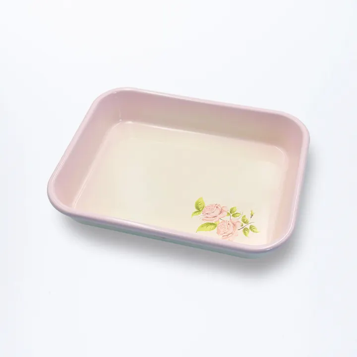 【imane premier】クリーム地にピンクの吹きが優しいバット。 下味や揚げ物の衣つけ、調味料や野菜を並べておく時に大活躍。専用の道具があるだけで普段のお料理も楽しくなります。 ホーロー製のためオーブンや直火にも対応しています。バットを使ってオーブンでできるちぎりパンやプリン、直接火にかられるのでグラタンやパイシチューは焼くところからバット1枚で行えます。 フタが付属しているため調理後に冷蔵庫で保存も◎。そのままテーブルに出せる可愛らしいデザインなので大皿料理やホームパーティーにもぴったり。 においの付きにくいホーロー製で清潔に。道具も、器もこれひとつ。 【ホーロー(琺瑯)の特徴】 金属とガラス、全く違う素材を結合させたホーローはそれぞれの良い面が生かされ、「ホーローならでは」の優れた特徴があります。 ・優れた耐久性、耐熱性、耐酸性 ・においが付きにくく抜群の非吸着性、清潔感 ・高い保温性で熱を逃さない ・美しい色合いと光沢が魅力 ■商品について イマンの商品はアンティークのような柄をほどこしている手作りの商品になります。 手作業で一つ一つ丁寧に柄つけておりますが、角度や位置等に若干の差がございます。 ■ホーロー製品 対応熱源:オーブン ※電子レンジ不可 ※加熱中や加熱直後は大変熱くなり火傷の危険がありますので、必ずミトンやふきん等のご使用をお願いします 【下記の場合は不良品ではありませんのでご注意ください】 ・ホーローの溶接部分や縁などに出る黒い部分は下地のホーローです。この部分はホーローがかかりにくいためこの様になります。 ・ホーローを焼く時に吊るすため、吊るしたあとが残る場合があります。 ・焼く際に細かな黒い点がつく場合やピンでつついたような小さな陥没がある場合もございますが、ご了承の程お願いいたします。 ・釉薬がかかりにくい部分は色ムラや凸凹、フタのズレ、素材や下釉薬が見られることがあります。 ・付属品の木ブタやポリプロピレンのフタは大量生産品につき細かな傷がある場合がございます。 ■手作りのため若干サイズが変わる場合があります。 ■撮影環境の関係上、実際の色と多少異なる場合があります。 ■販売商品以外のアイテムは付属しません。 ■他サイトにも掲載しています。在庫状況が変動する場合があります。 ■在庫数以上をご希望の場合は、お気軽にお問い合わせください。 ■商品は予告無く欠品・廃番となることがございます。ご了承ください。 ■イベント出展、夏季・冬季休業時は出荷予定日より長くかかってしまう場合がございます。  (お知らせにて掲載します。ご確認ください。)