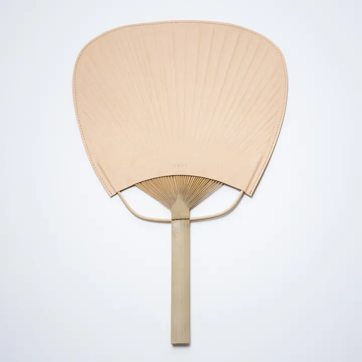 革製うちわ(藍染、泥染め、生成) 徳島の伝統文化である「藍染」と「阿波踊り」 徳島に拠点を持ち、徳島から発信するブランドとして、二つの伝統を融合し革製品としてカタチにしたいという想いから埋めれた製品です。 阿波踊りで使われるうちわをモチーフに、徳島で染められた藍染・泥染めの革を使用したうちわです。 うちわとして、インテリアとして、あなたの日常にそっと寄り添い共に変化してゆきます 0.4㎜厚の革と竹の骨で作られています。 微かな革のにおいと涼しい風をお楽しみいただければと思います。 ー素材について HWDTでは主な素材として、徳島県で藍染・泥染めを施した牛革を使用しております。 染色には化学(合成)染料は使用せず、無農薬栽培の藍と、徳島の自然から得られる素材のみを使用しています。染めるタイミングで変化する天然染料ならではの色合いと、革一枚一枚の個体差が織り成す表情をお楽しみください。 ー革について HWDTではヨーロッパ原産のタンニン鞣しの牛革を染色のベースとして使用しています。 理由としては、その肌目の美しさと革としての質の高さにあります。 ヨーロッパではほとんどが自然に近い環境で放牧により飼育されています。家畜にいたわりをもって接することが重要視され、十分なスペースで群れの仲間と暮らせる環境では、ストレスが少なく、気性も穏やかに成長していくため傷が少ない牛が育ちます。餌に関しても配合飼料ではなく、牧草や穀物が与えられているため健康な状態で育ちます。食肉としての価値を上げるために与えられる配合飼料は、人がマクドナルドを食べるようなもので、食べるだけ身体は大きくなり、脂身たっぷりな牛肉へと育ちます。しかしながら想像がつくように、肌はニキビなどで荒れ、お腹の皮は弛みしまりのないものになります。自然に近い環境でのびのびと健康に育つ牛は、お腹が弛むこともなく肌もきれいな成牛に成長します。そうした牛から得られる革は傷も少なく、革として使える部位が多くなります。その為自然と廃棄が減り、無駄減らしていくことができます。これが、HWDTがヨーロッパ原産の革にこだわる理由です。 ー染色について 革の染色は、全て徳島県海陽町にあるHi-COLOR handworksにて行っていただいております。 化学(合成)染料を用いることなく、無農薬栽培の藍と、徳島の自然から得られる天然の素材のみを使用して染色が施されています。 天然染料のみで行われる染色では、毎回異なる表情(色合い)に出会うことができます。気温、湿度、水温等、様々な状況が全く同じ日というのはなく、染料も常に発酵を続けるからです。その中で染氏の感覚を頼りに色を重ね一枚一枚の革が染め上げられています。ぜひ、これまでの量産品とは違う楽しみをHWDTの製品に見出していただけたら幸いです。同じラベルでも毎年味わいの異なるワインのように。