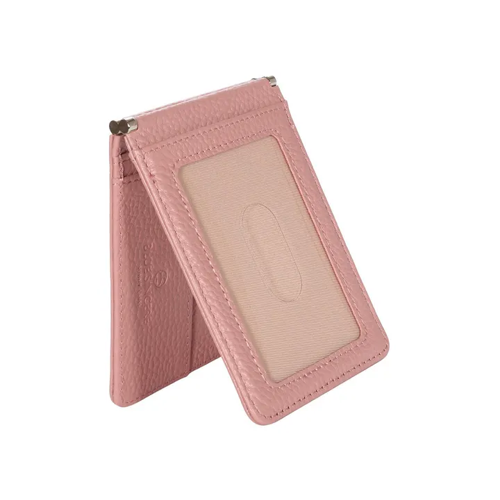 【超薄0.5cm使い勝手◎】二つ折りパスケース 本革 定期入れ 両面カードケース / PC4 スワニーピンク