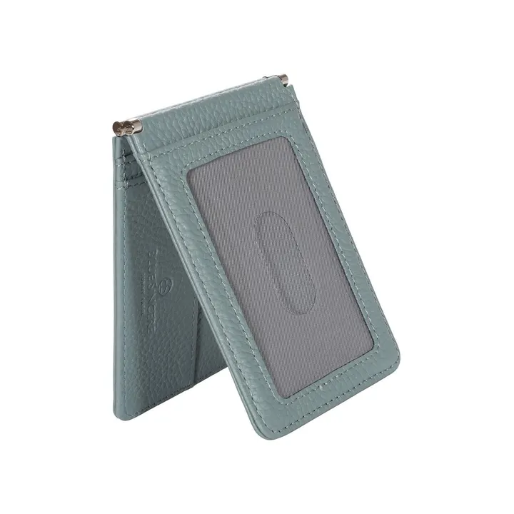 【超薄0.5cm使い勝手◎】二つ折りパスケース 本革 定期入れ 両面カードケース / PC4 スカイブルー