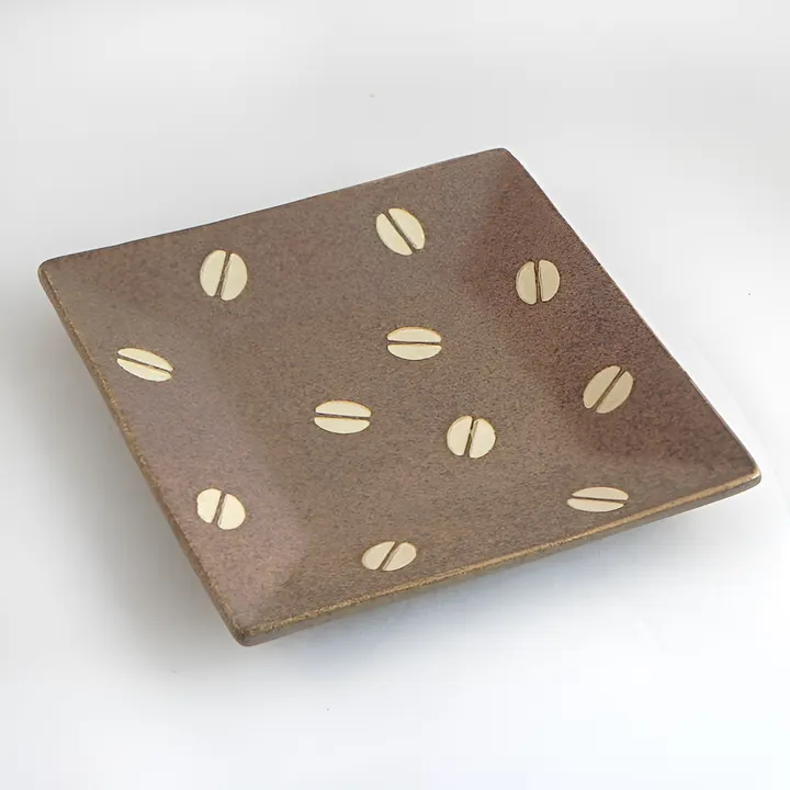 1人分のスイーツを盛るサイズ感がちょうど良いプレート。 BEANSシリーズはコーヒータイムが楽しみになる、カジュアルな器です。 コーヒーカラーを意識した色使いです。 カラーは3色。デザインは統一感がありながらも、手に取った質感は微妙に変えてあります。 《ホワイト》は唯一ふちどりのラインがあるデザイン。全体が艶のある仕上げになっています。 BEANSシリーズは半磁器製なので電子レンジやオーブンに対応。食洗機もお使いいただけます。