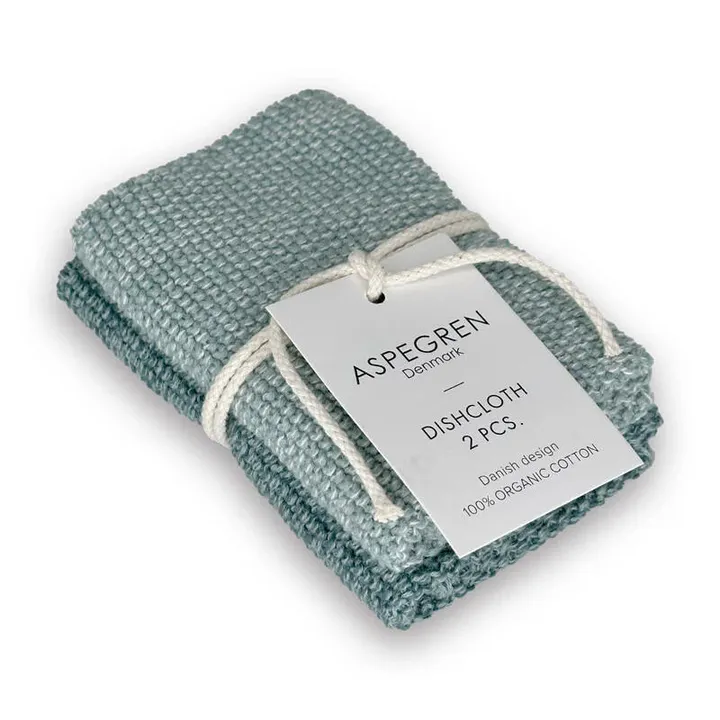 ※ただいま新パッケージに移行中です。写真とパッケージが異なる場合がございます事をご了承ください。 上質でわらかく、ほどよく厚みのあるディッシュクロス。オーガニックコットン100%で編んで作られています。 スモーキーで温かみのある色味で、濃い色と薄い色の2枚セット商品です。 食器拭きやテーブルふきんとしてはもちろん、お客様がいらした時のお手拭きとしてもおすすめです。 グラスの仕上げ拭きでは毛羽が出にくく、キュキュッと仕上がります。 ハンカチとしてもちょうど良いサイズです。 こちらのディッシュクロスと同じニット編みの大判キッチンタオルもございます。 環境に配慮したAspegrenのディッシュクロスは全て綿100%。プラスチックは使用していません。