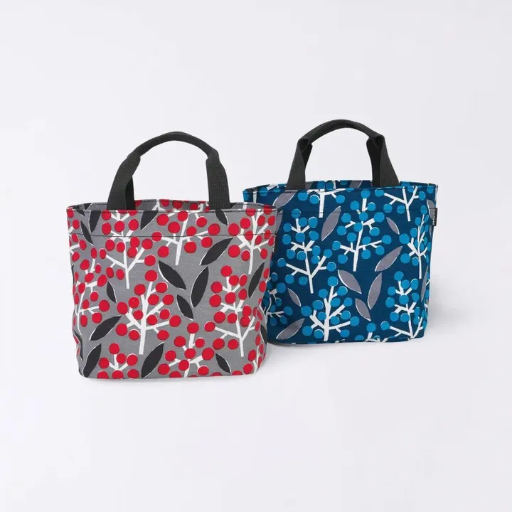 伝統文様と職人技が織りなす、美しく実用的な横型トートバッグ 「幸せの文様」シリーズは、日本の伝統文様が持つ「幸せを願う意味」に着目し、テキスタイルデザイナーとともに生み出したFuwa Marketオリジナルデザインです。シリーズの一つである南天は、「魔除け」「厄除け」として古くから親しまれてきた植物。縁起の良いモチーフを、現代のライフスタイルに馴染むようモダンにデザインしました。✔ こだわりの職人技:京都の染色工場で一枚ずつ丁寧に染色 ✔ モダンな伝統文様:3種類の文様×2色展開で選ぶ楽しさ ✔ 高い耐久性:平織りした厚手の帆布(8号)生地で丈夫&長持ち ✔ 上質な贈り物にも:特別な想いを伝える「幸せの文様」日常に華を添える伝統美 横型トートバッグのサイズは縦24cm× 横35cm (底横24cm) 。A4サイズより少し大きめのサイズ感。マチは15cmと広めで、財布やポーチはもちろん、ペットボトル、折り畳み傘などもすっぽり収納できます。お弁当箱やマイボトルもゆったり入る大きさなので、ランチバッグとしてもおすすめです。内側には定期入れや鍵などちょっとした小物の収納に便利なミニポケット付き。開口部には金具ボタンが付いているので、中身が見えにくく、飛び出しにくくなっています。お買い物や散歩、日常のお出かけはもちろん、通勤・通学のサブバッグや旅行、レジャーまでさまざまなシーンで活躍するトートバッグ。毎日のお出かけに、ちょっとした和の彩りを添えてくれます。手染めの魅力が際立つ職人技 トートバッグはFuwa Marketのオリジナルテキスタイル。国産の帆布ブランド「富士金梅(ふじきんばい)」の伝統ある帆布生地で、今では貴重なシャトル織機を使い、一枚一枚丁寧に織り上げられています。その高品質な帆布生地を京都の染色工場で職人が一つひとつ手作業で染色。伝統技法による、深みのある色彩と独特の風合いが魅力です。柄のアップをみると、手染めならではの繊細な色の重なりが感じられます。微妙な濃淡やにじみが手作業ならではの風合いを引き立て、唯一無二の美しさを演出。一版ごとに丁寧に染め上げることで、単なるプリントでは表現できない奥行きと温かみが生まれます。染め上がった手染め帆布生地は、職人が一点ずつ手作業で仕上げ。ひとつひとつ微妙に異なる表情が、あなただけの特別感を演出します。職人の手仕事により生み出される、この風合いと温もりの魅力をぜひ感じてください。南天文様に込められた願いや祈り 魔除けの南天 南天は、平安時代に中国から伝わり、古来より咳を抑える生薬として重宝されてきた植物です。秋の終わりから冬の初めにかけてつややかな赤い実をたくさんつけることや、「難転」という読みから「難を転じて福となす」と願いを込めた縁起木として親しまれています。また、玄関に置くことで悪い気を寄せ付けないとされる魔除けの意味合いもあります。江戸時代の百科事典には「南天を植えると火災を防ぐ」とあり、多くの民家で「火災除け」として不吉な方角に植えられ、家の安全を守る存在とされています。カラーは温かみのあるレッド系と、さわやかなブルー系の2色展開。落ち着いた色合いながらも個性があり、日常生活を彩るアイテムとしても最適です。和モダンなデザインなので浴衣や着物など和装にもよく合います。※大きな生地をカットして作るため、柄の配置には個体差があります。ご了承ください。
