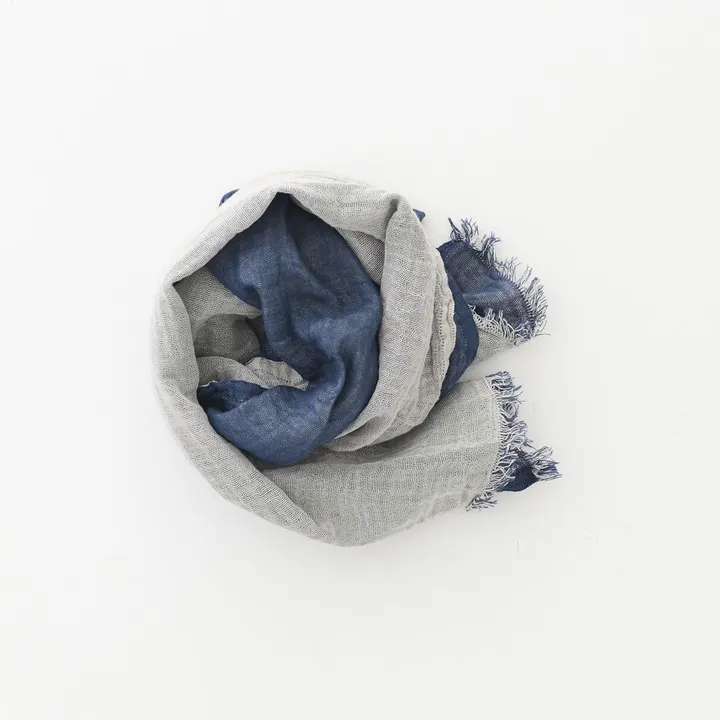 2色の蚊帳生地を合わせた、軽やかなショールです。 大判で、いろんな巻き方が楽しめます。 同系色のリバーシブルになっています。 ≪ 蚊帳生地の特徴 ≫ ・“風は通すが、蚊は通さない”江戸時代から続く日本伝統の布。 ・目の粗い生地で非常に軽く、速乾性・通気性・吸水性に優れています。 ・洗うほどにふんわりと優しい肌触りに変化していきます。 ・敏感肌の方やお子様にも安心してお使いいただけます。 [サイズ/組成] 約200cm×37cm ※洗濯によって、多少伸縮します。一番初めに糊を落とす際は、フリンジが重ならないように、水やぬるま湯につけてください。 綿100% 蚊帳2重仕立て OPP入 日本製