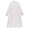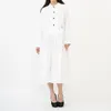 【ホワイトワンピースは特性上、検品作業が発生する場合がございます。綺麗な状態でお届けできるようにお時間いただく場合がございます。予めご了承ください。】 シンプルなのに個性的。 作業着のツナギをイメージしたスタイリッシュなワンピースです。 ただ着るだけで主役になれます。 両腰にポケットがついているので便利です。 下からスカートを履くようにご着用頂くと着やすいです。 生地には肌触りの良い上質なコットンを使用しました。 シャキッとした高級感のある手触りが特徴です。 シャツよりも少しだけ厚みがあるような生地感です。 ※モニターや環境によって若干の色や質感の誤差があります。 ●カジュアル■■■□□きれいめ ●生地の厚さ薄手■■■□□厚手 ●ストレッチなし ●ビンテージ加工の真鍮ボタンを使用 ●スカートの両側に計2ポケット ●ベルトループ有り Made in Japan 生地:コットン100% カラー:ホワイト 着用モデル身長:164cm(Mサイズ着用) 【こちらの商品はご試着可能です】