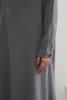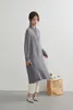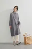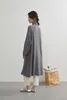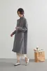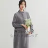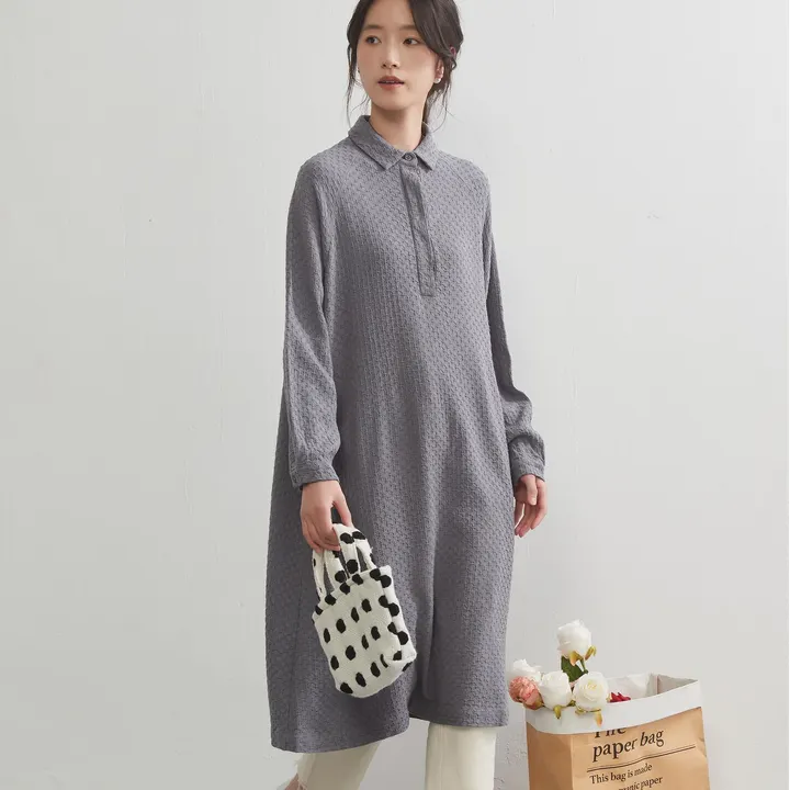 KNGC604・麻混ジャガード織り・ラグランスリーブ半開衿付き・シャツチュニック GRAY/L