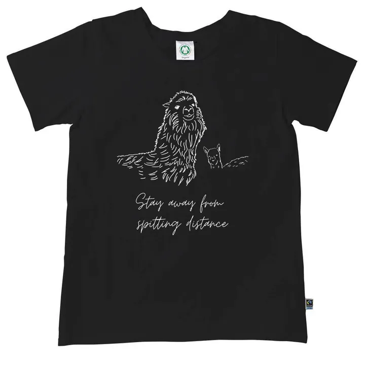 アルパカプリントTシャツ オーガニックコットン・フェアトレード ブラック Sサイズ