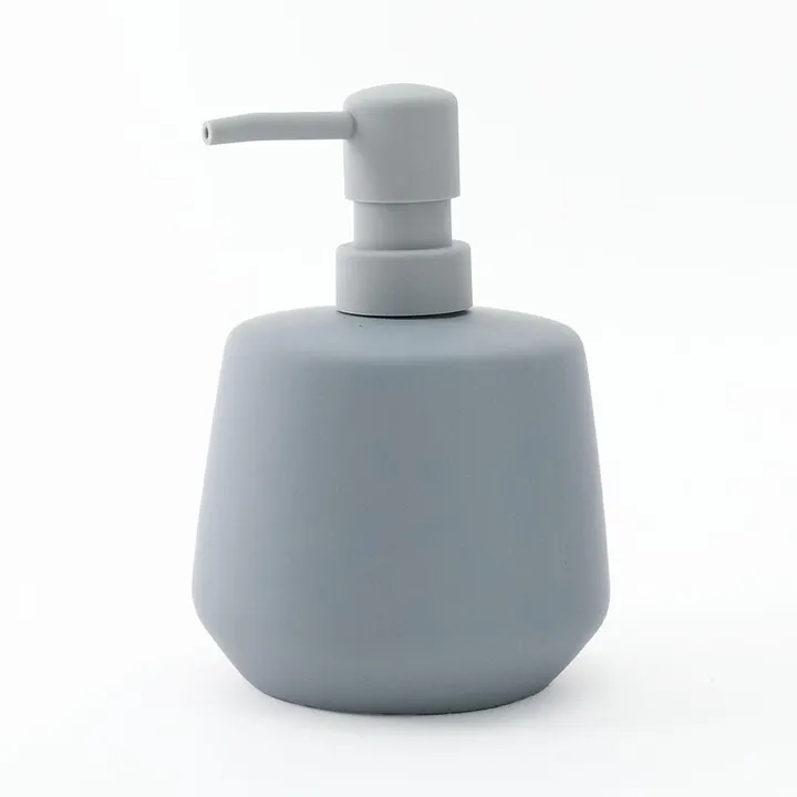 460ml 液体タイプ┃マットな質感のソープディスペンサー┃陶器 キッチン 洗面所 シンプル GY(グレー)