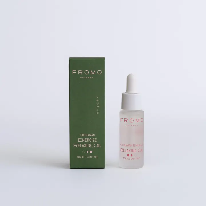 【植物成分100%月桃のフェイシャルオイル】 FROMOの美容オイルは、沖縄では古くからなじみのある月桃(ゲットウ)をはじめ、オリーブ果実由来の植物性スクワラン、ホホバ種子、マカデミアナッツなど、美容効果にすぐれた植物成分100%です。 ゆらぎがちな肌のコンディションをととのえ、肌にハリを与え、なめらかでツヤのある肌へと導きます。のびがよいテクスチャーで、少ない量でもしっかりと潤います。 精油は、月桃(ゲットウ)とラベンダー、ゼラニウムなどのフラワーハーブをブレンド。心・からだ・肌を前向きに明るく、ポジティブにしてくれるアロマです。 敏感肌や乾燥肌の方におすすめ。 *沖縄県「嘉手納町優良特産品」に認定されました。 ●使い方 ・はじめに1滴、オイルを中指にとって温め、香りを感じとります。 ・適量(2~3滴)を手のひらにとり、温めます。 ・ゆっくり香りを感じながら、顔の下から上にむかって肌にぬり広げます。 ・両手で顔全体を包み込み、やさしくプレスするようになじませます。 ・乾燥しやすい方は、洗顔後、化粧水前にブースター(導入美容液)としてもおすすめです。 ● おすすめの使用シーン 洗顔直後の使用で、ブースター(導入美容液)として。 化粧水後の保湿 お顔のマッサージ ヘアオイル ● こんな方におすすめ 乾燥が気になる。 敏感肌 肌を柔らかく保ちたい