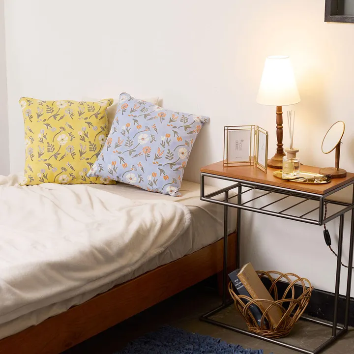 クッションカバー┃春風にそよぐ花のブロックプリント クッションカバー BL(ブルー)