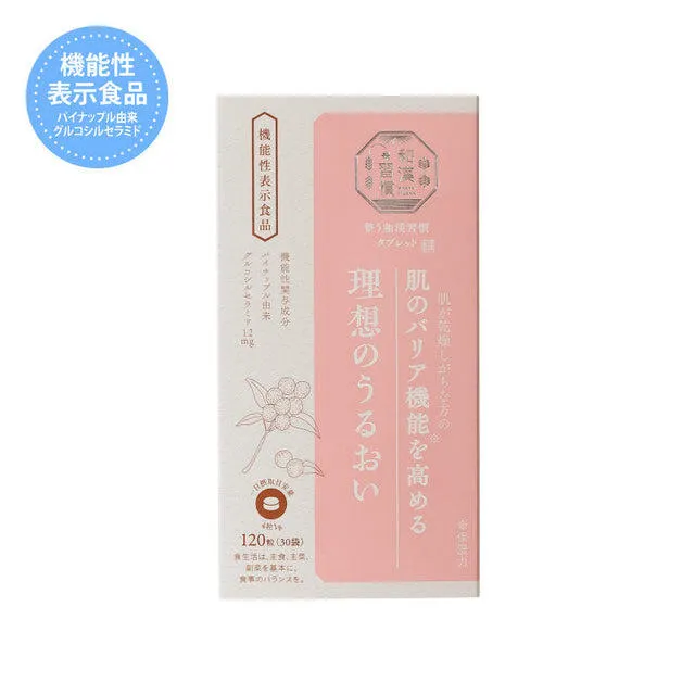日本で親しまれる東洋のハーブ "和漢ハーブ"を中心に、植物のチカラを凝縮したタブレットです。 和漢ハーブと心地よい暮らし、"整い習慣"をはじめませんか? パイナップル由来グルコシルセラミドを配合。 クリームなどの保湿による乾燥の気になるパーツケアと合わせて、 お食事などと合わせて摂取することで内側からの全身の肌の潤いを守るのを助けてくれます。 ご自身のライフスタイルに合わせて3ヶ月間程度の連続使用がおすすめです。 【機能性表示食品】 届出表示内容:本品にはパイナップル由来グルコシルセラミドが含まれます。 パイナップル由来グルコシルセラミドには、肌が乾燥しがちな方の肌のバリア機能(保湿力)を高め、肌の潤いを守るのを助けることが報告されています。 届出番号:H1113 機能性関与成分:一日摂取目安量(4粒1g)当たり パイナップル由来グルコシルセラミド1.2mg <整う和漢習慣タブレット3つのこだわり> 【1】こだわり抜いた配合素材 世界各国から、希少で貴重な素材を取り寄せ、配合比率まで徹底的にこだわりました。 【2】忙しい方でも毎日続けやすい便利な個包装 1日分(4粒/1袋)ずつに小分けされているから携帯できて、いつでもどこでも手軽に摂れます。 【3】やさしい風味で、するっと飲みやすいタブレット 和漢ハーブのやさしい香りはそのままに、味が気になる素材でもタブレットだから、気にせず摂れます。 食生活は、主食、主菜、副菜を基本に、食事のバランスを。 ※本品は、事業者の責任において特定の保健の目的が期待できる旨を表示するものとして、消費者庁長官に届出されたものです。 ただし特定保健用食品と異なり、消費者庁長官による個別審査を受けたものではありません。
