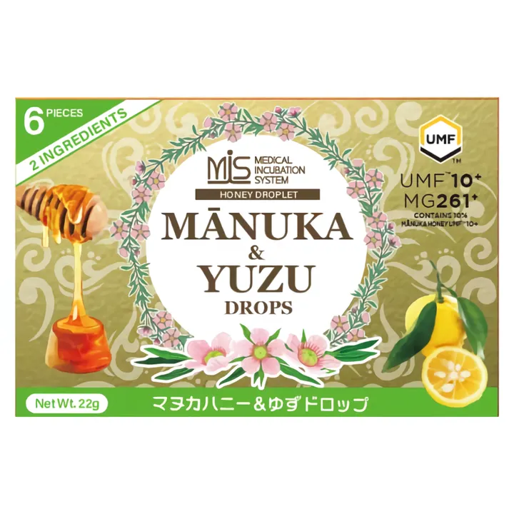 原材料はニュージーランド産マヌカハニーと国産ゆずのみ。 砂糖や水飴は一切使用せず、特許製法で純粋なマヌカハニーをそのままドロップ状に固めました。MIS薬剤師チームが開発・推奨する、安心・高品質なのど飴です。 【商品特徴】 ・原材料はニュージーランド産マヌカハニーと国産ゆずのみ ・砂糖・水飴不使用(特許製法) ・ニュージーランド産マヌカハニー使用 ・国際品質基準「UMF」認定(UMF10+) ・MIS薬剤師チームによる開発・推奨 【お召し上がり方】 ・のどの乾燥が気になるときに ・スポーツ中の自然な栄養補給に ・持ち歩いて手軽な健康サポートとして 【注意事項】 ※1歳未満の乳児には与えないでください。