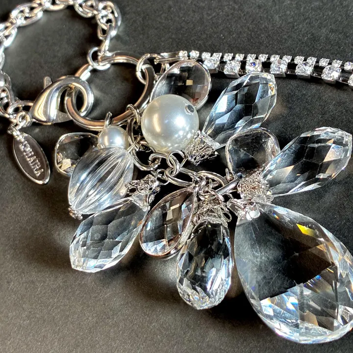 重厚なガラスとメタルを用い、静かな輝きと品格を纏うアクセサリー。日常にも特別な場にも寄り添う、大人のためのチャームブランド。