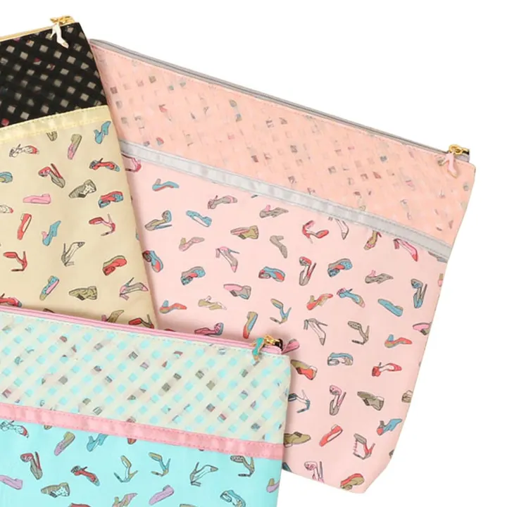 タブレットやラップトップケースとして最適なBigサイズのポーチ。 クッション性のある肉厚な素材感です。 クラッチバッグとしてもピッタリなので旅先のディナーやちょっとしたおでかけにもぜひ連れて行って! 内側2か所オープンポケット付き。 靴が散りばめられた総柄デザインは、それぞれ柄やシェイプが違うからお気に入りを探すのも楽しい。 引手のハイヒールチャームがワンポイント。 ※正規の電子機器ケースではございませんので自己判断の上ご使用ください。
