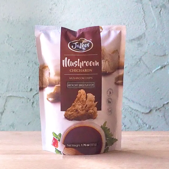 【きのこスナック】【ヴィーガン対応】 ジャリース マッシュルームチチャロン ヒッコリーバーベキューフレーバー 50ℊパック スモーキーな香りとバーベキューソースの甘辛い味付けが食欲を刺激します。ビールやハイボールとの相性も最高です。