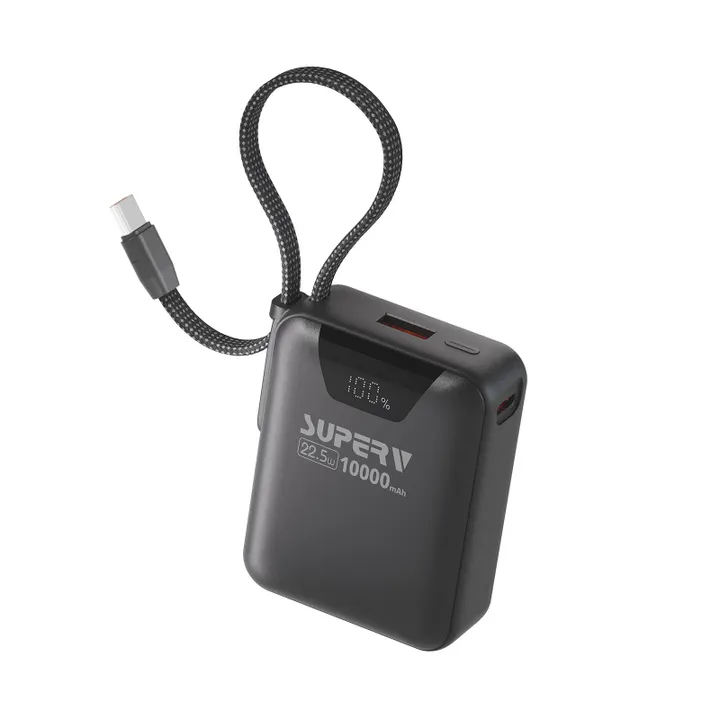 SUPERV Power15は、 10,000mAhの大容量を手のひらサイズに凝縮し、 利便性とファッション性を両立させた超小型モバイルバッテリーです。 本体には全長約15cmの「ストラップ型Type-Cケーブル」を内蔵。 指に掛けて持ち運べるだけでなく、充電が必要な時はそのままデバイスに接続できるため、 ケーブルを別で持ち歩く煩わしさを解消します。 重さはわずか約167.5g。卵約3つ分ほどの軽さながら、 最大22.5Wの高出力に対応しています。 さらに、内蔵ケーブルに加えて「USB-Aポート」と「Type-Cポート」を搭載しており、 別途ケーブルをご用意いただくことで最大3台のデバイスを同時に充電することが可能です。 思わず手に取りたくなる5色展開で、 実用的なガジェットを「お気に入りのアクセサリー」へと進化させました。 商品の魅力 圧倒的なサイズ感: 58×69.7×28.9mmの超小型設計。 バッグやポケットの隙間に収まり、荷物を最小限にしたい方に最適です。 ストラップ型内蔵ケーブル: 全長15cmのType-Cケーブルがストラップを兼ねており、携帯性と実用性を両立させています。 最大3台同時充電: 内蔵ケーブル、USB-A、Type-Cポートの3系統から同時に給電可能。 複数のデバイスを持つ現代のニーズに応えます。 彩り豊かな5色のカラー展開: 定番色から華やかなカラーまで、 ライフスタイルに合わせて選べるラインナップ。 ギフトにもおすすめです! 10,000mAh & 最大22.5W出力: スマートフォンを約2〜2.5回フル充電可能な容量と、 PD/QC対応の急速充電機能を備えています。 スマートなデジタル残量表示: バッテリー残量をパーセント単位で確認できるディスプレイを搭載し、 バッテリー本体への充電タイミングも逃すことはありません。 安全設計: 過充電・過電圧保護などの安全機能を搭載し、大切なデバイスを保護します。 SUPERVブランドについて SUPERVは2017年に香港で創業した、 高品質充電アクセサリーを世界中で展開するブランドです。 「Life Should Be Easy.」をコンセプトに、 革新的な技術とユーザーフレンドリーなデザインで、 世界中のユーザーに信頼と利便性を提供しています。 Marcys Storeからのご提案 Marcys Storeは、SUPERVの日本正規代理店です。 この「Power15」は、優れたスペックはもちろん、 その「可愛らしい見た目」と「多機能性」で、 女性層や若年層のお客様にもアピールしやすい商材です。 スマホショルダー等との相性も良く、店頭でのアイキャッチ効果も抜群です。 「実用性も可愛さも妥協したくない」というお客様の声を形にした製品として、 貴社のラインナップにぜひお加えください。