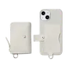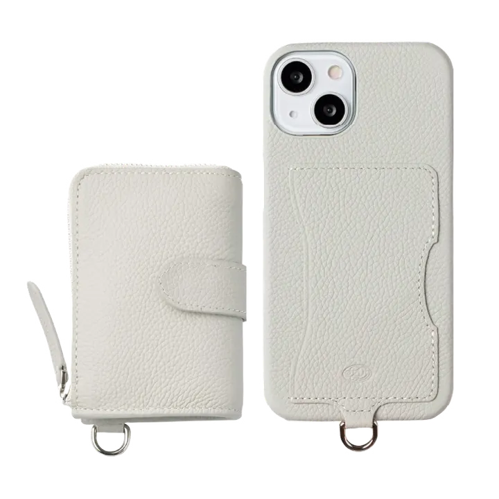 素材は、デミウルーボ の代名詞でもあるフランス産カウレザー。 L字ジップを開けると真ん中にコインスペースがあり、マチが広めで視認性と利便性を兼ね備えています。 コインスペースの両端には、カードや領収書などをドバッと入れることができるポケットがついており、 お札は三つ折り、もしくは4つ折りでしっかり収納できます。カスタムハードケースに装着できるようになっており、 シーンに合わせてスマホと財布をセットで持ち歩くことができます。 装着した状態でもそのままジップが開けられるようになっているので、取り外すことなく使用可能です。 単体としてももちろん、カスタムハードケースとセットでぜひご利用ください。 シンプルなデザインなので男女、年齢関係なくお使いいただけます。プレゼントにも最適です。 <カスタムハードケース> フランス産レザーを使った高級感あふれるレザーハードケース。 カード類を横から入れることができ、 ストラップでぶら下げても落ちないようにサイズ設計されています。 通常のクレジットカードなどは1枚、薄いカードは2枚入れることが可能です。