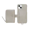 2023年9月より弊ブランドはDemiurvo(デミウルーボ)改めDEMIU(デミュウ)に改名いたします。 それに伴い、DEMIUの名を配したブランドネーム・ロゴが採用されます。 一部商品に関しては、Demiurvoとして引き続き販売いたしますが順次モデルチェンジ予定です。 何卒、ご理解のほど宜しくお願い致します。 <ROND> フランス語で「丸」を意味するロンドは、デミウルーボ が提案する究極のミニマルウォレットです。 素材は、デミウルーボ の代名詞でもあるフランス産カウレザー。 L字ジップを開けると真ん中にコインスペースがあり、マチが広めで視認性と利便性を兼ね備えています。 コインスペースの両端には、カードや領収書などをドバッと入れることができるポケットがついており、 お札は三つ折り、もしくは4つ折りでしっかり収納できます。カスタムハードケースに装着できるようになっており、 シーンに合わせてスマホと財布をセットで持ち歩くことができます。 装着した状態でもそのままジップが開けられるようになっているので、取り外すことなく使用可能です。 単体としてももちろん、カスタムハードケースとセットでぜひご利用ください。 シンプルなデザインなので男女、年齢関係なくお使いいただけます。プレゼントにも最適です。 <カスタムハードケース> フランス産レザーを使った高級感あふれるレザーハードケース。 カード類を横から入れることができ、 ストラップでぶら下げても落ちないようにサイズ設計されています。 通常のクレジットカードなどは1枚、薄いカードは2枚入れることが可能です。 ROND(ロンド)とTROIS(トロワ)をこのカスタムハードケースに装着することが可能となっており単体でも、セットでも様々な使い方ができる万能ケースです。 ※MagSafeはご利用になれません。 ※ストラップは別売りです。 ー仕様ー ・素材 本体:牛革 金具:ニッケル ・重量 約90g