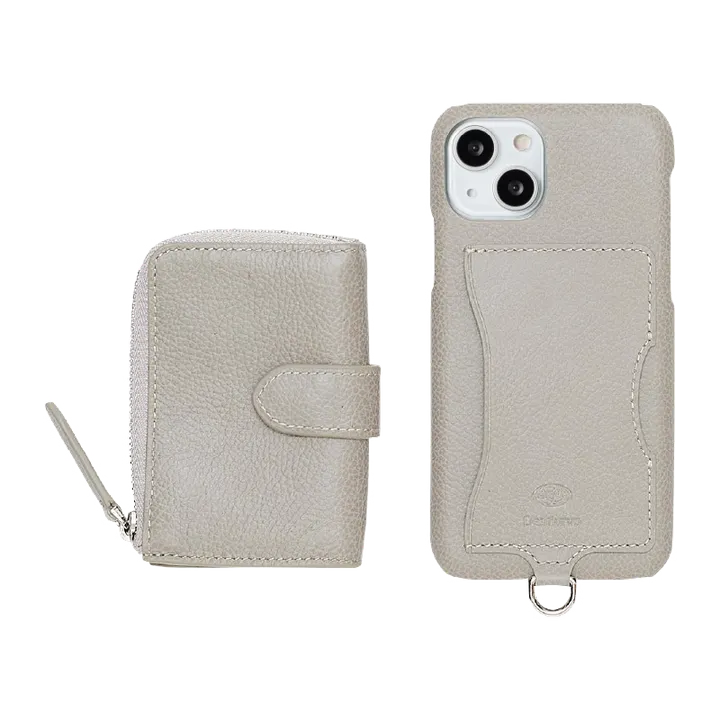素材は、デミウルーボ の代名詞でもあるフランス産カウレザー。 L字ジップを開けると真ん中にコインスペースがあり、マチが広めで視認性と利便性を兼ね備えています。 コインスペースの両端には、カードや領収書などをドバッと入れることができるポケットがついており、 お札は三つ折り、もしくは4つ折りでしっかり収納できます。カスタムハードケースに装着できるようになっており、 シーンに合わせてスマホと財布をセットで持ち歩くことができます。 装着した状態でもそのままジップが開けられるようになっているので、取り外すことなく使用可能です。 単体としてももちろん、カスタムハードケースとセットでぜひご利用ください。 シンプルなデザインなので男女、年齢関係なくお使いいただけます。プレゼントにも最適です。 <カスタムハードケース> フランス産レザーを使った高級感あふれるレザーハードケース。 カード類を横から入れることができ、 ストラップでぶら下げても落ちないようにサイズ設計されています。 通常のクレジットカードなどは1枚、薄いカードは2枚入れることが可能です。