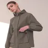 裾が広がるAラインスタイルで女性らしいシルエットを演出 フード付きでさまざまなスタイルに対応可能 前丈より後ろ丈が長く、カジュアルで軽快な着こなし ジッパー+比翼仕立ての二重開閉仕様(隠しスナップ付き) 袖口にゴムバンドを使用し、動きやすさを強化 縦型・横型のポケットを多数配置し、実用性アップ