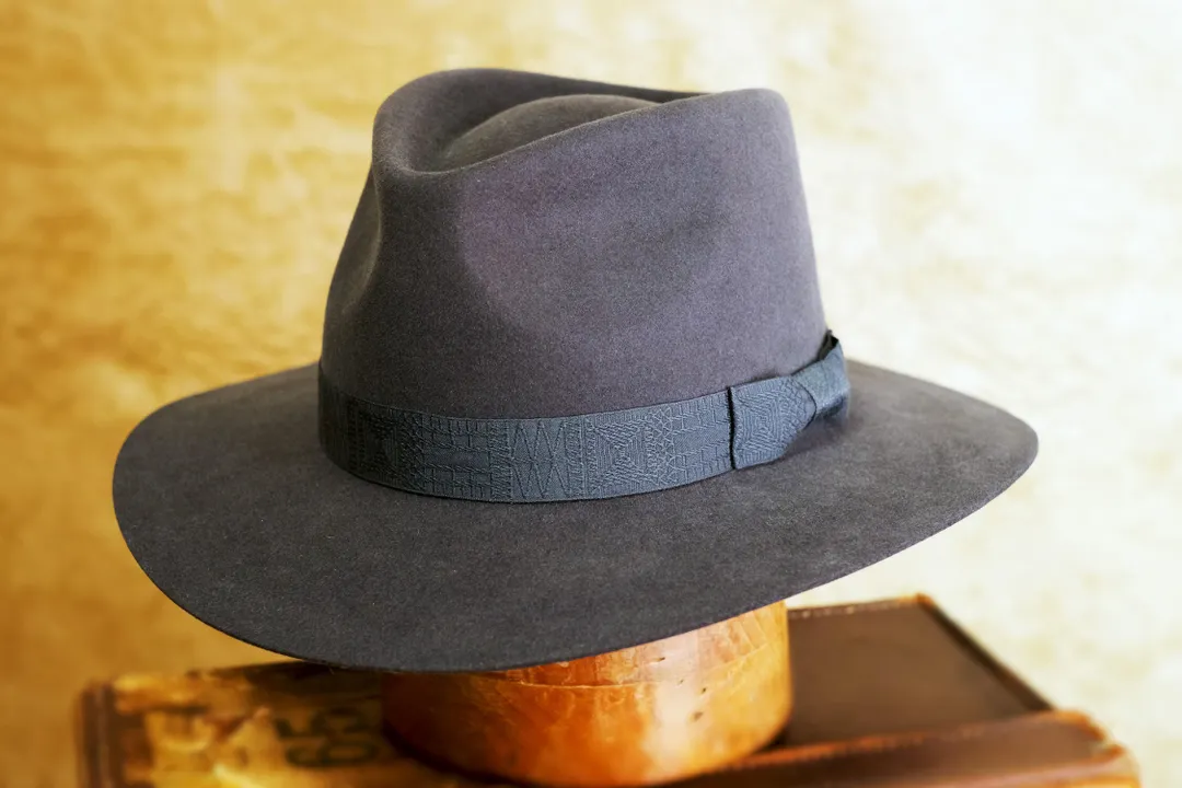 サイズ58cm、ブリム幅7.0cm アンテロープ グレー ティアドロップ <特徴その1> アンテロープ とにかく驚くほど軽く、皆さん手にとった瞬間にびっくりされます。 手触りも柔らかく、上質であることがすぐに伝わります。 なのでかぶっているストレスを全く感じません。 <特徴その2> リボン シックにスタイリッシュに仕立てよく。 とても印象的な日本製ジャガードリボン(グレー)をチョイスしました。 <この作品について職人から一言> 帽子を作る工程に「型入れ」というものがあります。 これは文字通り、木型に入れて帽子の形を作る作業なのですが、 「水入れ」「型入れ」「乾燥」の順に行います。 大量生産のものは一瞬で機械でプレスしておしまいです。 私たち帽子職人は帽体にまず「水入れ」をしたのち、木型に手で入れていきます。 帽子の形を決める工程で、手の感触を頼りに行う大事な作業です。 この後、天気にもよりますが3日間くらい乾燥させます。 もちろんプレスものは型に入れたまま乾かすことなどありません。 この時間が、帽子の型崩れを防ぐのに大事な時間になります。 手触りが柔らかく、何年も型崩れしない、そんな帽子を作るために、 とても大事なことなのです。 この帽子に限らず、手を抜かず、この作業を行なっています。 素敵な大人のための帽子に仕立て上がっています。