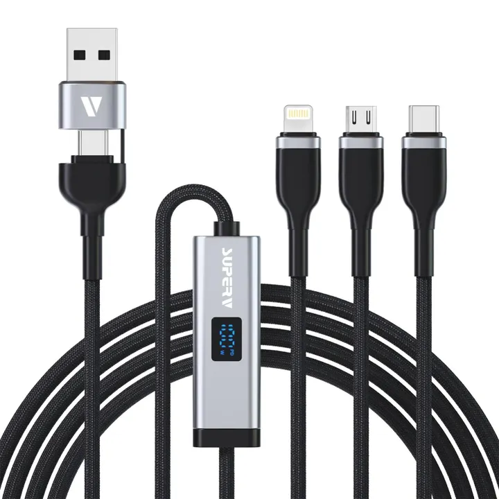 SUPERV Rt52 3in1 急速マルチ充電ケーブル | USB-C & USB-A to タイプC+ライトニング+マイクロUSB 120cm (サンプル)