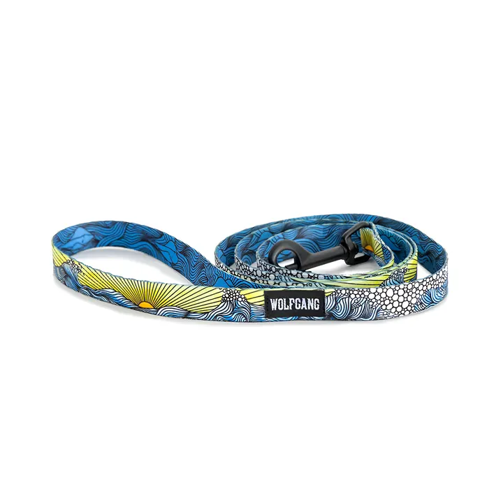 犬用のリード。 WOLFGANG MAN & BEAST のリードやカラー(首輪)は、車のシートベルトなどにも使われる、強度と柔らかさ、耐久性を兼ね備えたポリエステル100%のウェビング素材を使用しています。 水を吸い込まない、極細のポリエステル糸を非常に密に編むことによって、海や川でも使用可能、汚れや臭いもつきにくい特徴があります。 さらに、ウォッシャブルで洗濯も可能。 アウトドアでの使用にもピッタリです。 製法には、ウェルディング製法( 生地を熱で溶かすことによって生地同士を接着し、強い耐久性を実現する溶着製法 )を採用。 糸による縫い目が無いので、飼い主・愛犬にとって快適な使い心地を実現。通常の縫製による擦れからの糸のほつれが生じることがありません。   WOLFGANG MAN & BEAST のすべてのドッグプロダクトは、こだわりのアメリカンメイド。 ドッグプロダクトは、大切なパートナーである愛犬が、長年愛用できるものであってほしい。 その思いから、選び抜かれた素材を使い、品質にこだわり、WOLFGANG MAN & BEASTのすべてのドッグプロダクトはアメリカ国内で生産されています。