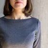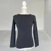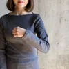【日本製】丸胴コットンフライス_ボートネック長袖 ダークグレー 1-2サイズ