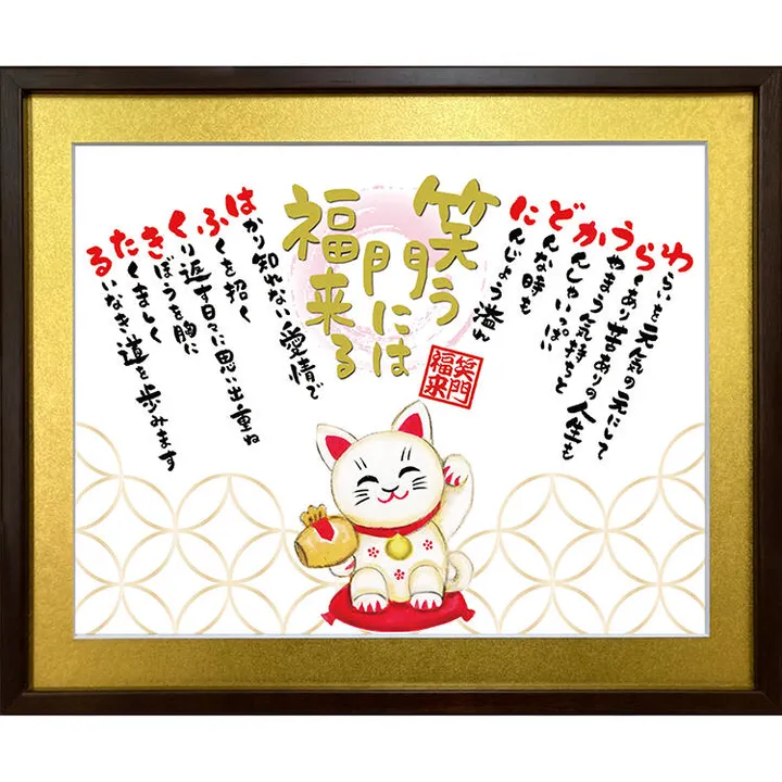 笑う門には福来るBigサイズ ポエム 詩 金マット お祝い ギフト 贈り物 プレゼント 七福神 招き猫 ふくろう 福かえる【詩絵(うたえ)】 招き猫