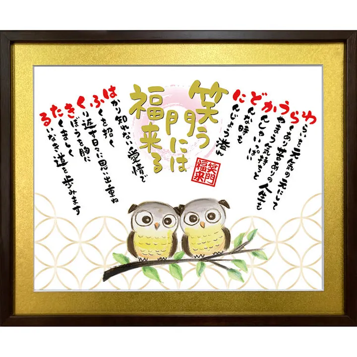 笑う門には福来るBigサイズ ポエム 詩 金マット お祝い ギフト 贈り物 プレゼント 七福神 招き猫 ふくろう 福かえる【詩絵(うたえ)】 ふくろう