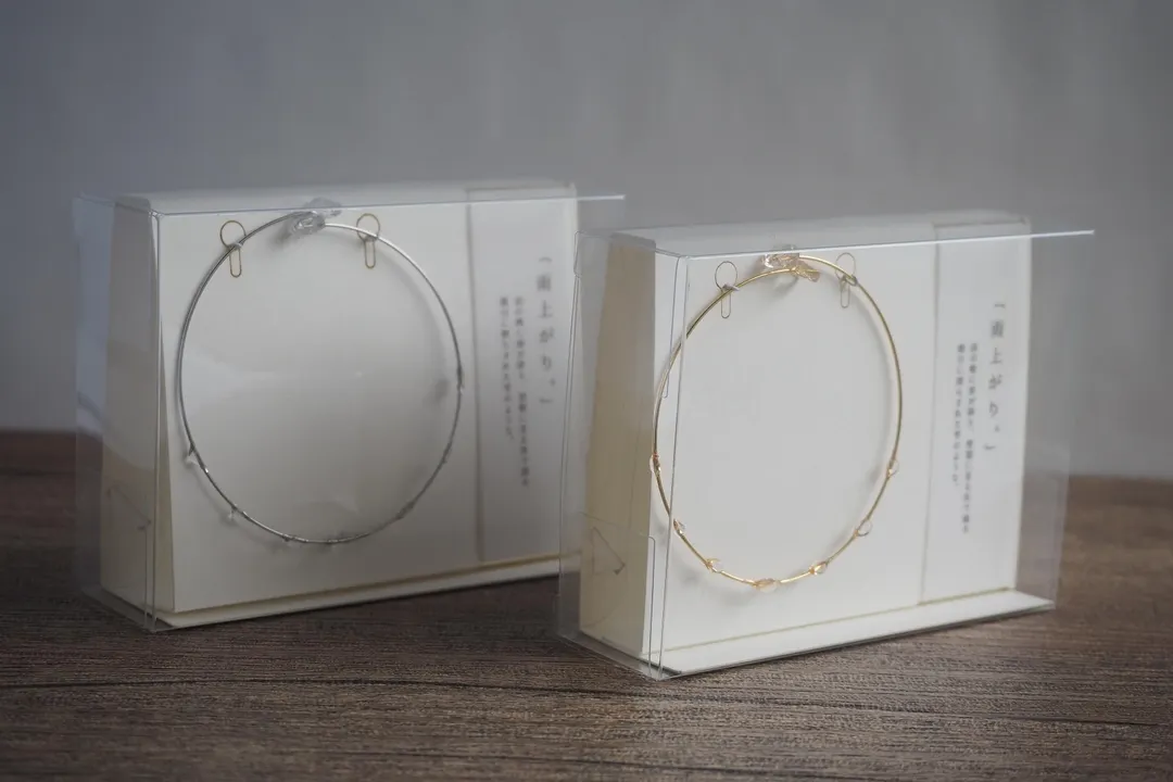 「雨上がり。」バングル 【image】 花鳥風月の『風』シリーズ。 …景色や空気感をモチーフにしたものです。 夜のうちに雨が止み、電線やガードレールに滴る雨水をイメージしました。 レジンで水滴を演出し、つやを出すコーティングをしているので ガラスのような透明感です。 カラーは「ゴールド」or「シルバー」 セットでお使いいただけるイヤリング・ピアスもございます。 ※こちらは「オリジナルBOX入り」の価格となります。