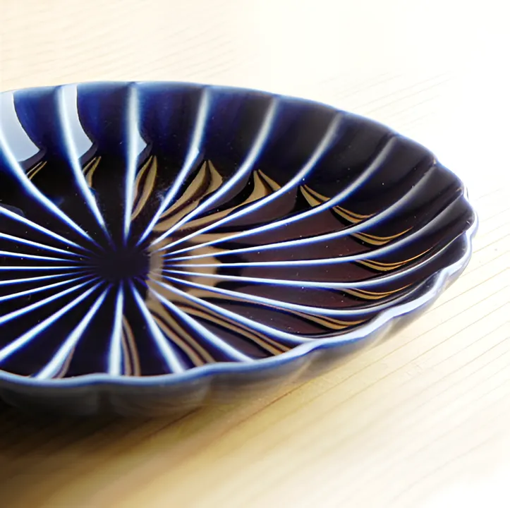 ぎやまん陶はガラスのような透明感ある質感と漆器を思わせる深みのある風合い、そして菊の花をモチーフにした優美なデザインが共存した器です。とろりとした釉薬のかかり具合はまさにガラス細工のような光沢があり華やかな雰囲気をまとっています。見た目の繊細さとは裏腹に、実用性はかなりタフ。硬質で丈夫な磁器の器ですので、温める程度の電子レンジや食洗機も使えます。