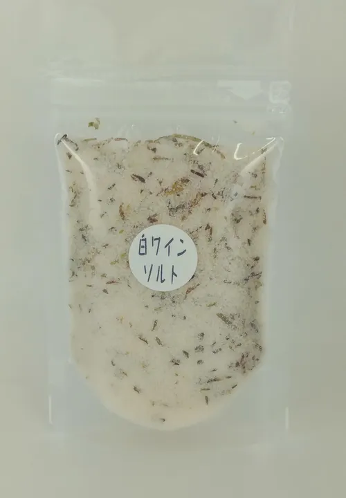 ワイン、塩、ハーブを適度な湿り気が残るまで煮詰めて作ります。 ワインの風味がするお塩で東温市で生産された無農薬ハーブを加えて、さらに香りよく仕上げたワインソルトシリーズです。 白ワインソルトは、あっさりとしたお料理に合うようにタイムとオレガノ、そしてローズマリーをブレンドしています。 見た目がきれいなうえ、ワイン由来のほのかな甘い香りと旨味が料理のおいしさをぐんと引き立ててくれます。 お料理のワンポイントや仕上げにお使いください。 また、HIME-LIAオリーブオイルとの相性もいいので、ぜひ合わせてお使いください