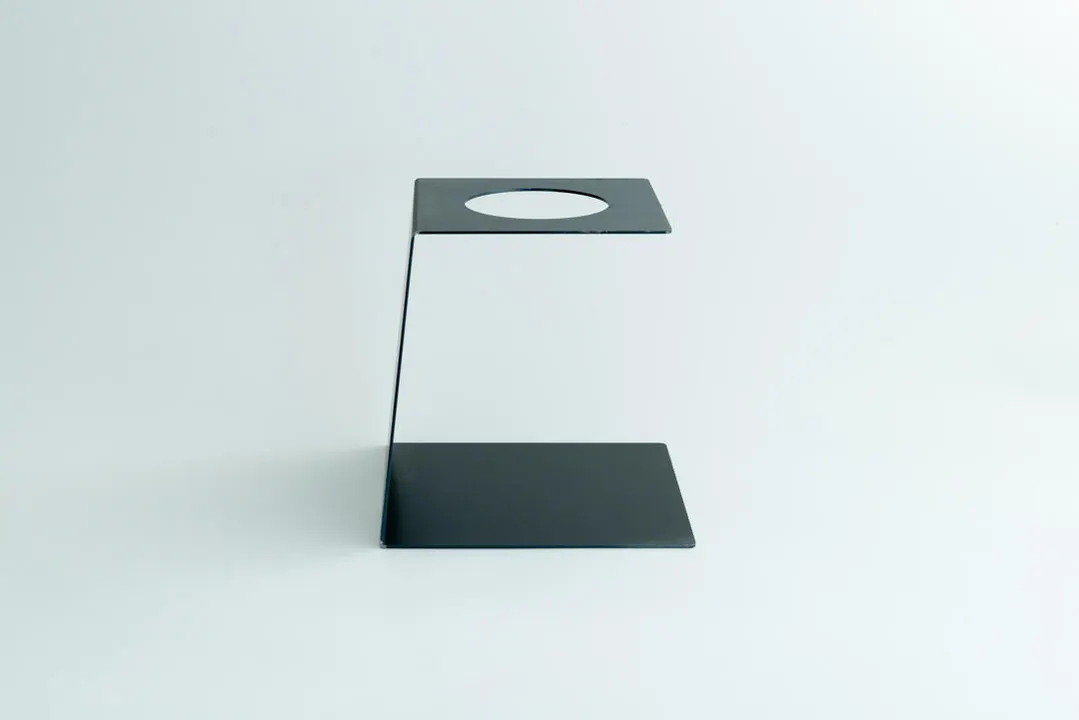 コの字型の造りのシングル用ドリップスタンド。 鉄板を曲げて作ったこちらは鉄工所ならではのアイテムになりました。 ハンドドリップでコーヒーを抽出する際の時間のおともにどうぞ。 クロとシルバーの二種類からお選びください。