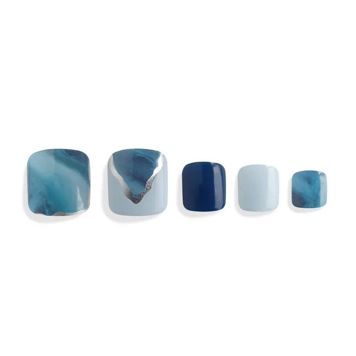 足元から季節を楽しむ「TOE series」(足指用)ペディキュアシリーズ。 サマーコーデの仕上げに。 色と質感にこだわったジェルネイルシールは、水にも強く、海やプールでも取れずに美しさをキープ。 素足になる季節を、もっと自由に、もっと軽やかに。 深く澄んだ海を思わせる、ブルーのグラデーションとシルバーのラインが印象的なデザイン。 マーブルの流れが静かな波のように広がり、足元に涼やかな奥行きを添えます。 【NNNAILはこんな方におすすめ】 ・ネイルサロンに行く時間がない方 ・爪を傷めずネイルを楽しみたい方 ・家事や仕事で忙しい方 ・お休みの日だけネイルを楽しみたい方 ・季節や気分に合わせてネイルを変えたい方 ・セルフネイルに挑戦したいネイル初心者の方