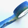 【 キラキラマスキングテープ 15mm Sunrise】  ★★ 箔を使用した、キラキラが可愛いキラキラマスキングテープ 〜 第3弾  Sky、Room、Textile の3つをテーマに <12柄> を揃えました ★★ のどかな牧場と朝日…日の出の光と、山の凹凸をゴールド×アイスミントの2色の箔で表現しました。 からっと晴れた空に飛ぶ鳥たちや、牧場のひつじ、朝日を見に来た山うさぎなど沢山のどうぶつが目を覚まします。