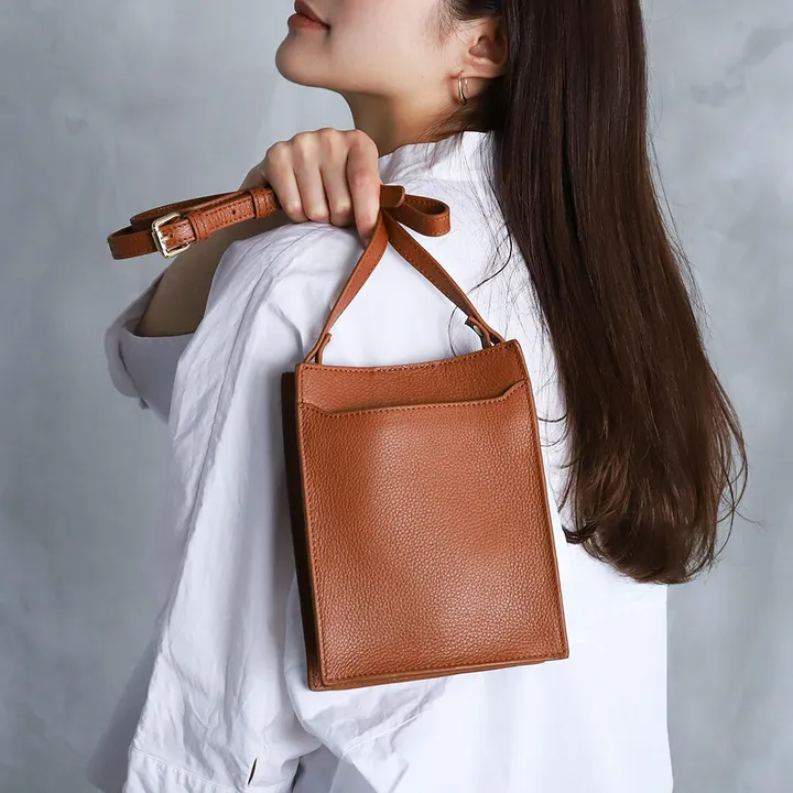 【必要最小限の収納力】 「スマホやミニ財布、鍵など必要最小限の持ち物だけでお出かけしたい」 そんな声から企画したスマホポーチです。 二つ折り財布・スマホ・ハンカチ・ティッシュ・リップなど必要な荷物は十分収納できます。外側のポケットは、スマートフォンを入れたりとなにかと便利です。 【選び抜いた環境想いの素材】 「ずっと長く愛用してほしい」 その想いから素材選びに徹底的にこだわりました。 素材には耐久性に優れたベジタブルタンニン鞣しのシボ革を採用しました。すぐに傷が付いてしまう羊革や合革では使う度のお手入れが大変ですが、シボ革は傷が付きにくいので安心して毎日お使いいただけます。 忙しいあなたでも日々の大変なお手入れの必要がありません。 また、シボ革は耐久性に優れているので長く新品状態をお楽しみいただけます。 【マグネット付きで落下防止】 バッグ内側はマグネットボタン付きなので、荷物の落下防止だけでなく、開け閉めもラクラクです。 ショルダーベルトは4段階のお好みの長さに調節できるので、体型に合わせて調整したり肩掛けや斜め掛けにできます。 【BLUE SINCERE(ブルーシンシア)とは?】 「ブランドの発展とともに、バングラデシュの社会問題を解決する」という理念を掲げ、 バッグや財布を自社工場のバングラデシュの職人たちと、その土地の素材の可能性を追求し、 先進国でも通用する高機能なプロダクトを生産しています。