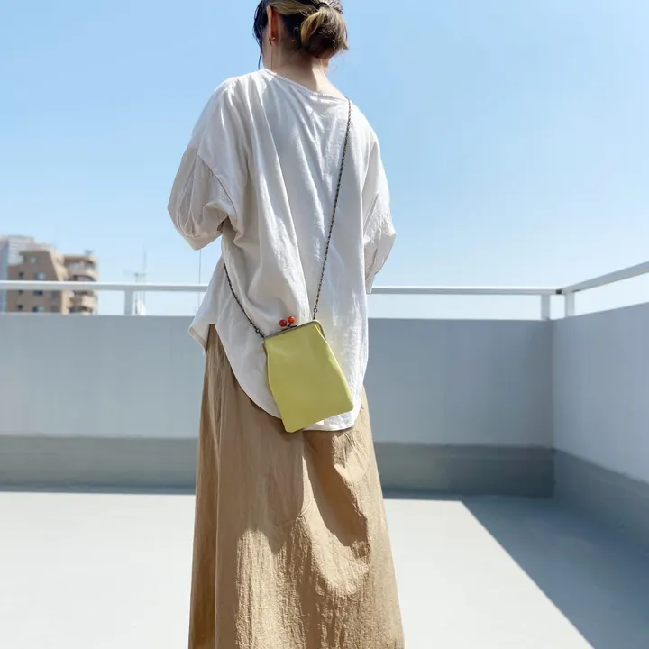 がま口スマホポシェット*ホースレザー*大玉口金 イエロー
